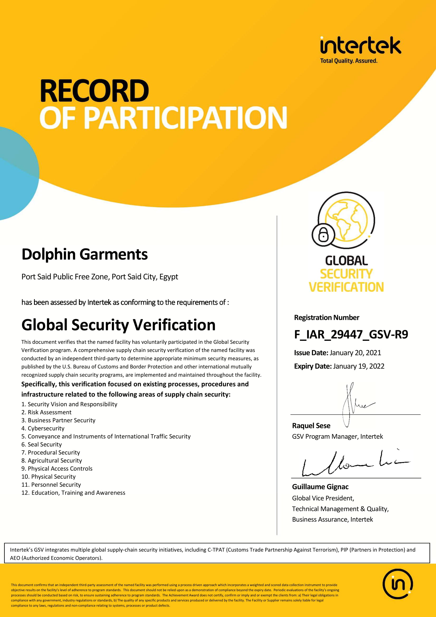 participant) ,WRAP certified & SEDEX (performing SMETA audit annually).